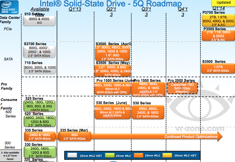 We aren’t quite sure how they do it but VR-Zone has discovered and published the Intel SSD Roadmap once again, revealing that we should be seeing a 530 release, along with new M.2 NGFF form factors released in the very near future.