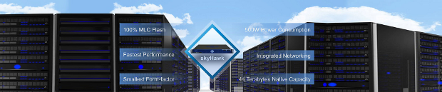 The skyHawk series of enterprise-level solid-state storage systems from Skyera are priced at an industry breakthrough point of less than $3 per gigabyte; and mark the first time that the latest 19/20nm architecture of solid-state drives can be used as a direct replacement for traditional enterprise-level hard disk-based systems. Skyera’s skyHawk solution has been heralded by the industry as a visionary and innovative product, thus sustaining Skyera’s strategy for mainstream enterprise-level solid-state storage. Its SEOS solid-state operating system creates a unified solution that combines hardware, storage and data management. This unified solution provides top-level performance; and lower cost and lower power consumption attributes.