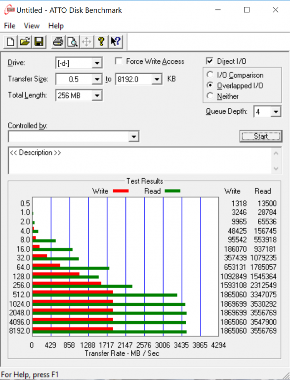 ATTO Disk Benchmark is perhaps one of the oldest benchmarks going and is definitely the main staple for manufacturer performance specifications. ATTO uses RAW or compressible data and, for our benchmarks, we use a set length of 256mb and test both the read and write performance of various transfer sizes ranging from 0.5 to 8192kb. Manufacturers prefer this method of testing as it deals with raw (compressible) data rather than random (includes incompressible data) which, although more realistic, results in lower performance results.