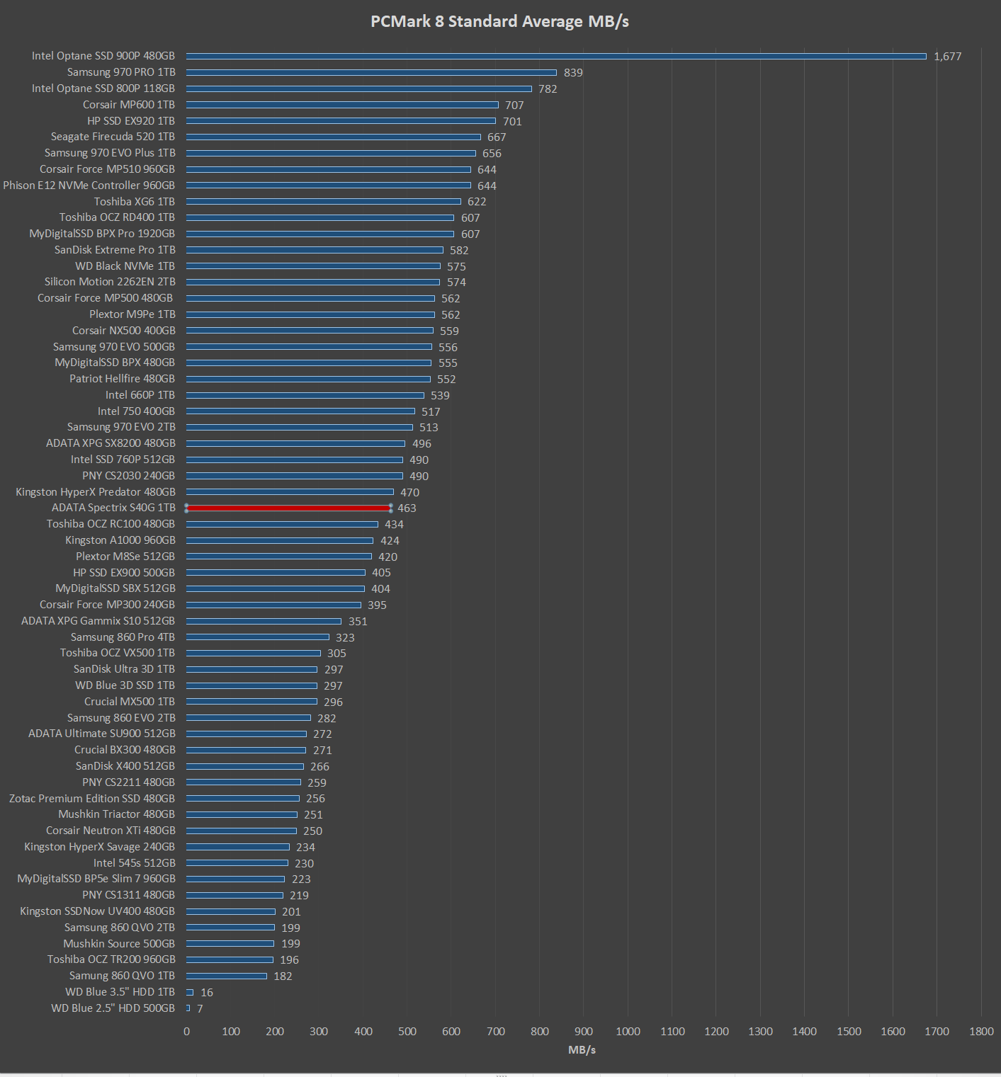 The Score and Storage bandwidth we are seeing with the XPG Spectrix S40G is a bit lower than might be expected for an SSD of this calibre. We would have liked to see it at least beside the XPG SX8200 a few marks above it on the chart.
