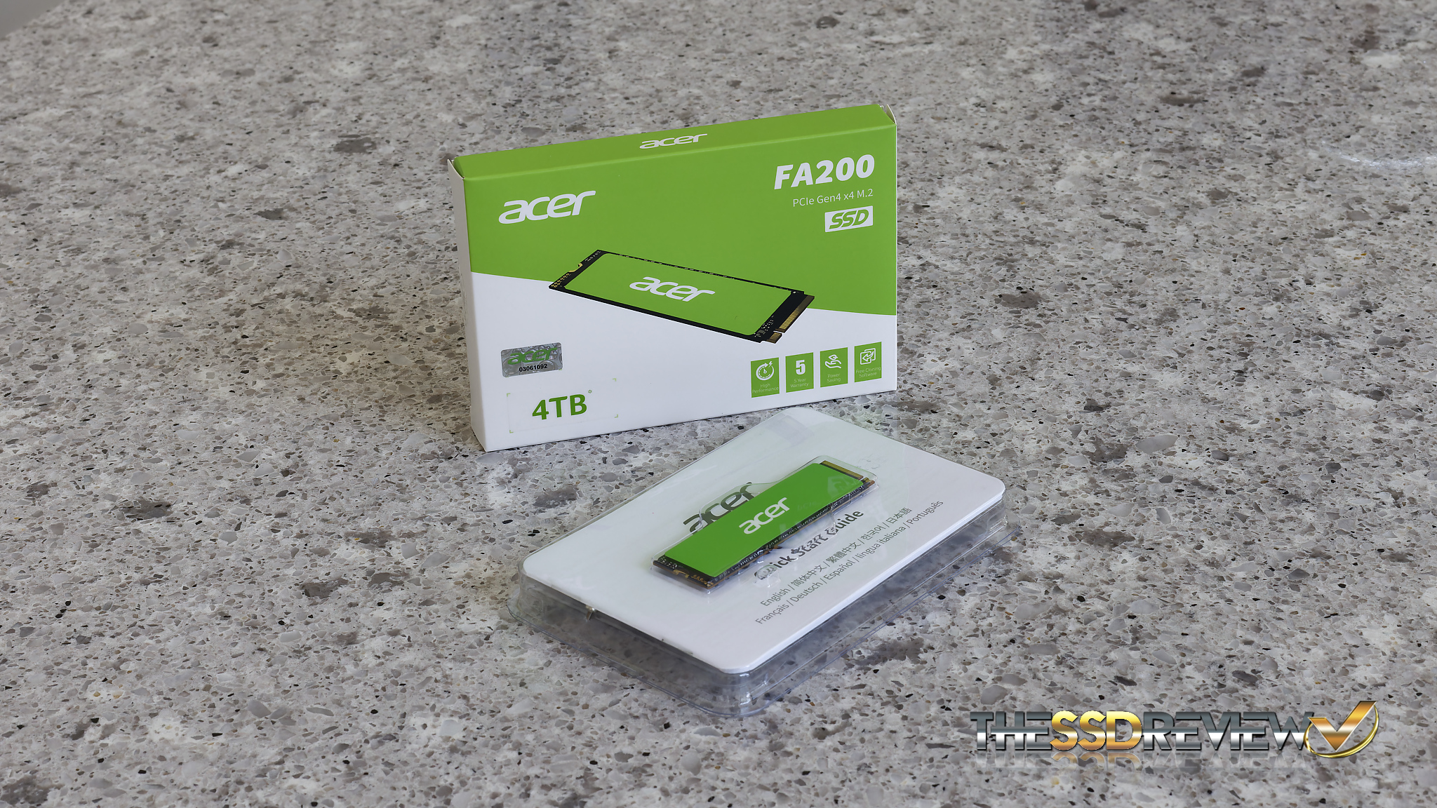 Specifications detail speeds for the FA200 at up to 7200MB/s read and 6200MB/s write and 1000K read and write IOPS. The Acer FA200 has an industry leading limited warranty of 5-years and endurance of 250TBW for the 500GB which doubles for every capacity upgrade. Our 4TB version has an endurance of 2000TBW.