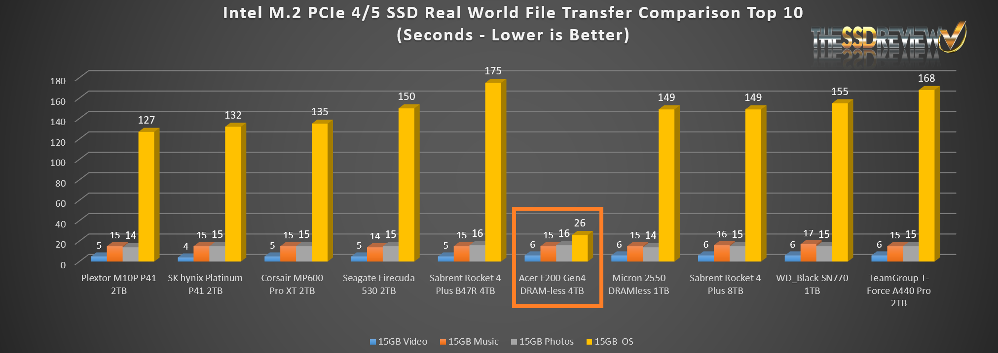 For our True Data Testing, we simply loaded 15GB video, music, photo and OS files onto the Acer FA200 Gen4 4TB SSD and copied the data to a new folder on that same disk.