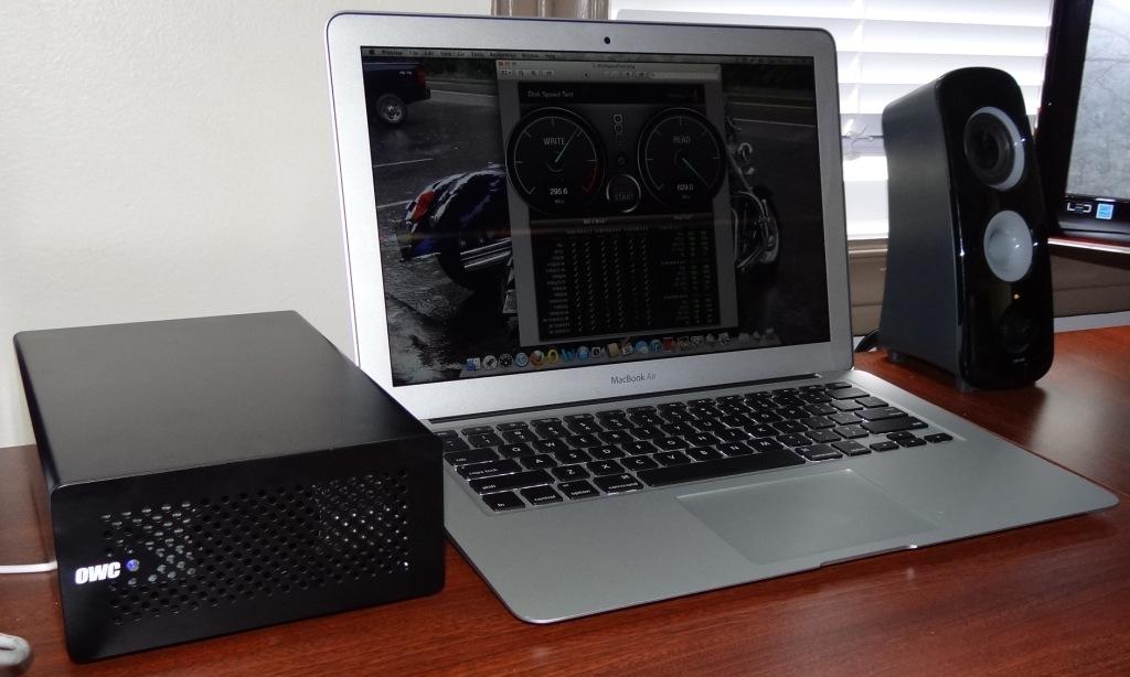 802.11ac is the new standard in Wifi speeds, allows up to 3x increase and is standard in the 2013 MBA. This characteristic alone actually sold me on writing this article as I observed, for the first time, speeds of over 850 Mbps between my router and the MBA. Considering that we have seven systems comprising an open network that is secure and each connects by Wifi access alone, the upgrade to the Netgear R6300 router was well worth the cost. The R6300 even has a USB where we plugged in a 256GB flash drive for an additional open drive for all.