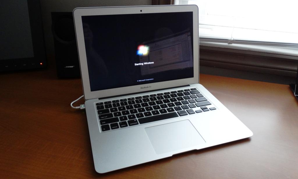With respect to pricing, I don’t think any comparable ultra even comes close to the 2013 MBA starting point of $999, and by ‘comparable’ we are speaking of the Samsung Series 9, Lenovo X1 Carbon, Toshiba Portege Z830, and Acer S7 types of ultrabooks…all ultras that we have had in our hands for some time now. Even maxing a 13″ model out with an Intel Dual Core i7 @1.7Ghz, 8GB of memory and a massive 512GB SSD, you are still well under the 2K mark at $1849. Not only can a similar build not be found in any other ultra, but also, pricing for their premium build can breach the ugly $2K line in the sand. We just had to get this shot in with Windows 7 booting up! MBA Price Check