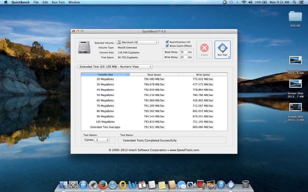 The 2013 MacBook Air contains a proprietary PCIe SSD that is the first to break the SATA barrier in a laptop. As a result, performance of just under 800MB/s is possible for which makes this system comparable to the performance of the Acer S7 we previously reviewed The S7 still tops the charts as the world’s most powerful ultrabook at 890MB/s. The difference between the two is that the 2013 MBA uses brand new MPCIe technology whereas the Acer utilized a proprietary dual sided SATA 3 custom design on the S7. The concern we see with Acer’s solution is one of upgrading or replacement where the ONLY way to upgrade or replace the S7 SSD is to contact Acer Support.
