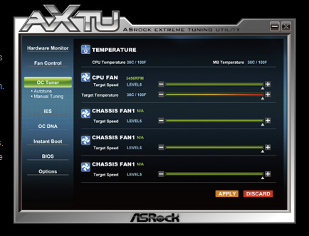 ASRock Extreme Tuning Utility (AXTU) is all-in-one software to fine-tune different features in a user-friendly interface, which includes Hardware Monitor, Fan Control, Overclocking, OC DNA, IES and XFast RAM.