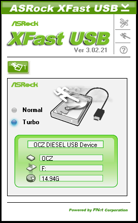 XFast USB Technology allows for higher performance with USB devices. It is very simple to use. When a USB device is plugged in, a USB manager will pop up that allows the user to utilize the enhanced USB drivers that ASRock has developed. This works for both USB 2.0 and 3.0.
