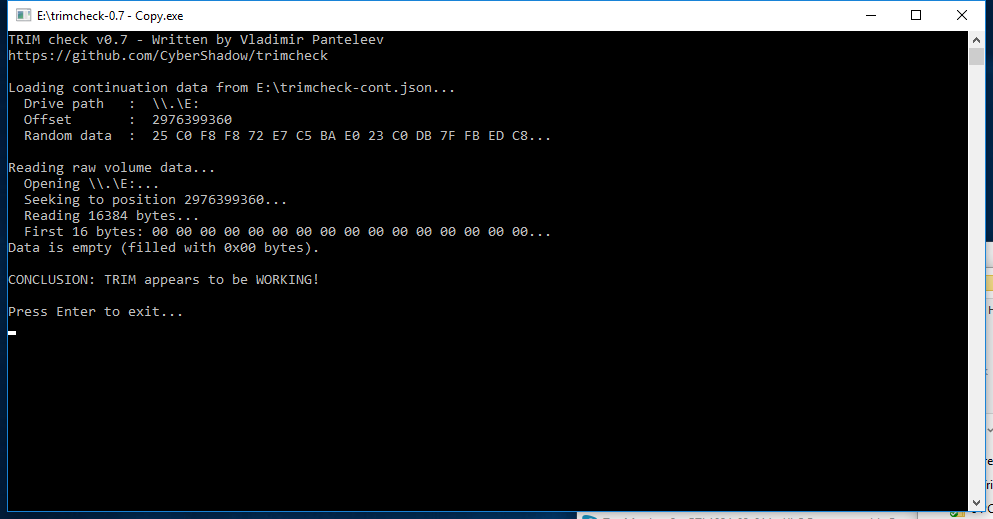 As can be seen in the screenshot above, TRIMcheck’s result is positive. TRIM is indeed working.