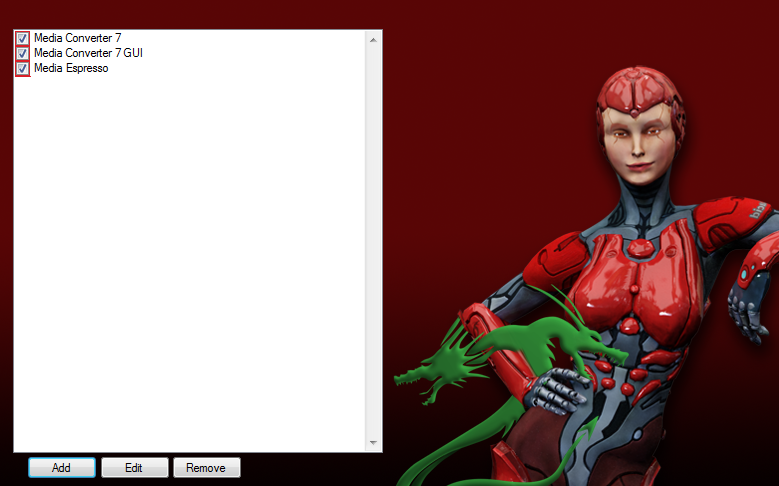 Speaking of transcoding, here is the list of default programs that come with Virtu (pictured above). I fired up the MediaExpresso utility to test video conversion speeds: