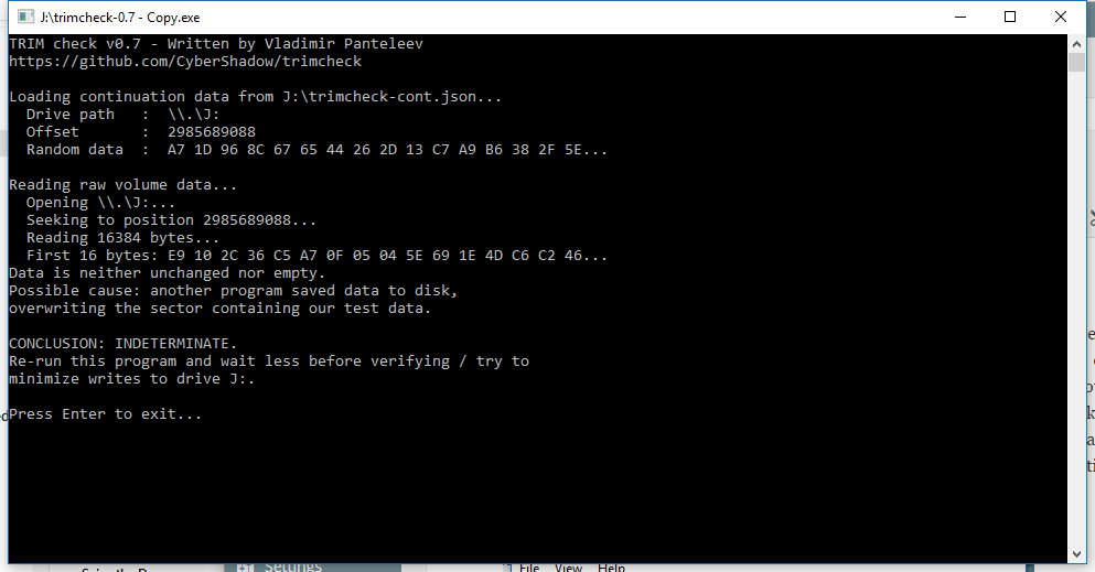 As can be seen in the screenshot above, TRIMcheck’s result is Intermediate. This means it cannot determine if TRIM was in fact working, but it does not mean that it won’t kick in at all.
