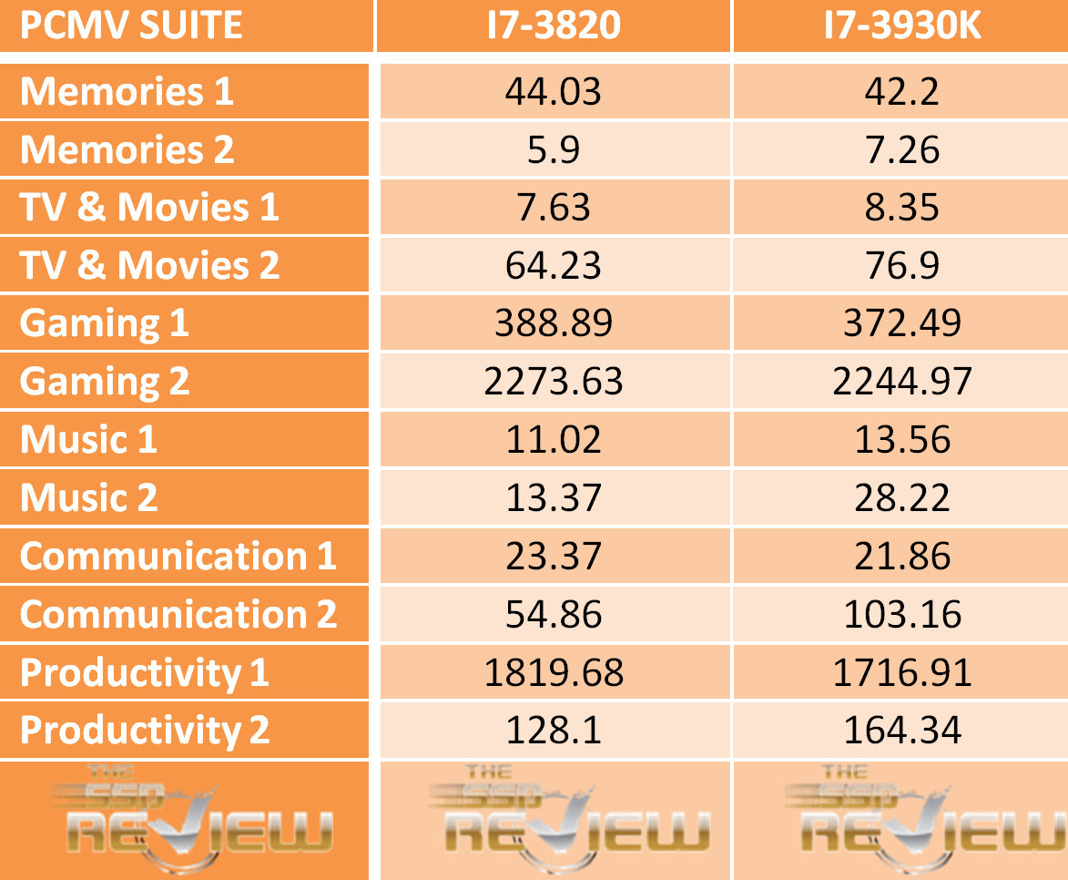 There are two suites where the 3930K does have large performance variances compared to the 3820, and these are the suites where the multiple cores are leveraged by the workload. It is important to remember that the workloads that are being tested here are representative of normal user activity. This does not mean that the 3930K is not as powerful as its billing. It certainly is, and then some!