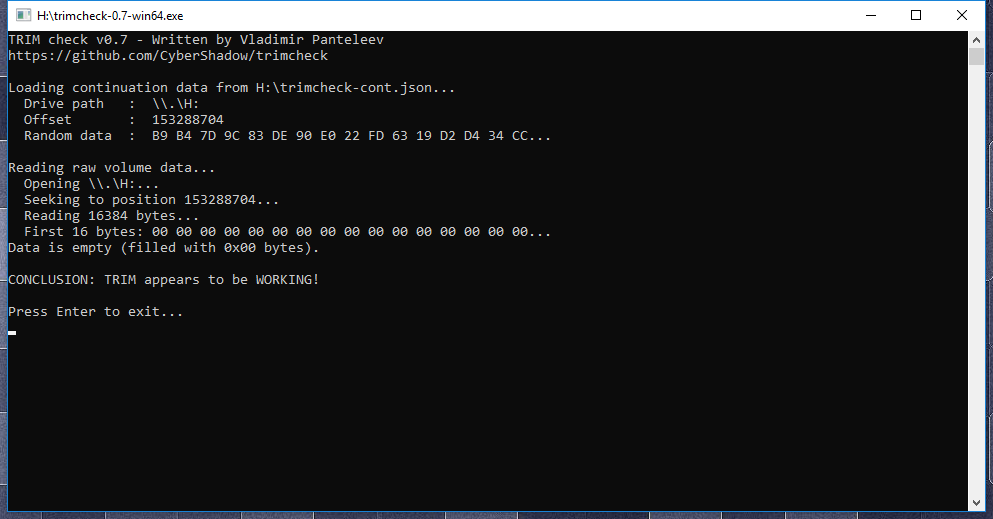 As can be seen in the screenshot above, TRIMcheck’s result is positive. TRIM is indeed working.