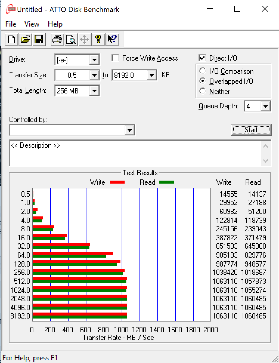 ATTO Disk Benchmark is perhaps one of the oldest benchmarks going and is definitely the main staple for manufacturer performance specifications. ATTO uses RAW or compressible data and, for our benchmarks, we use a set length of 256mb and test both the read and write performance of various transfer sizes ranging from 0.5 to 8192kb. Manufacturers prefer this method of testing as it deals with raw (compressible) data rather than random (includes incompressible data) which, although more realistic, results in lower performance results.
