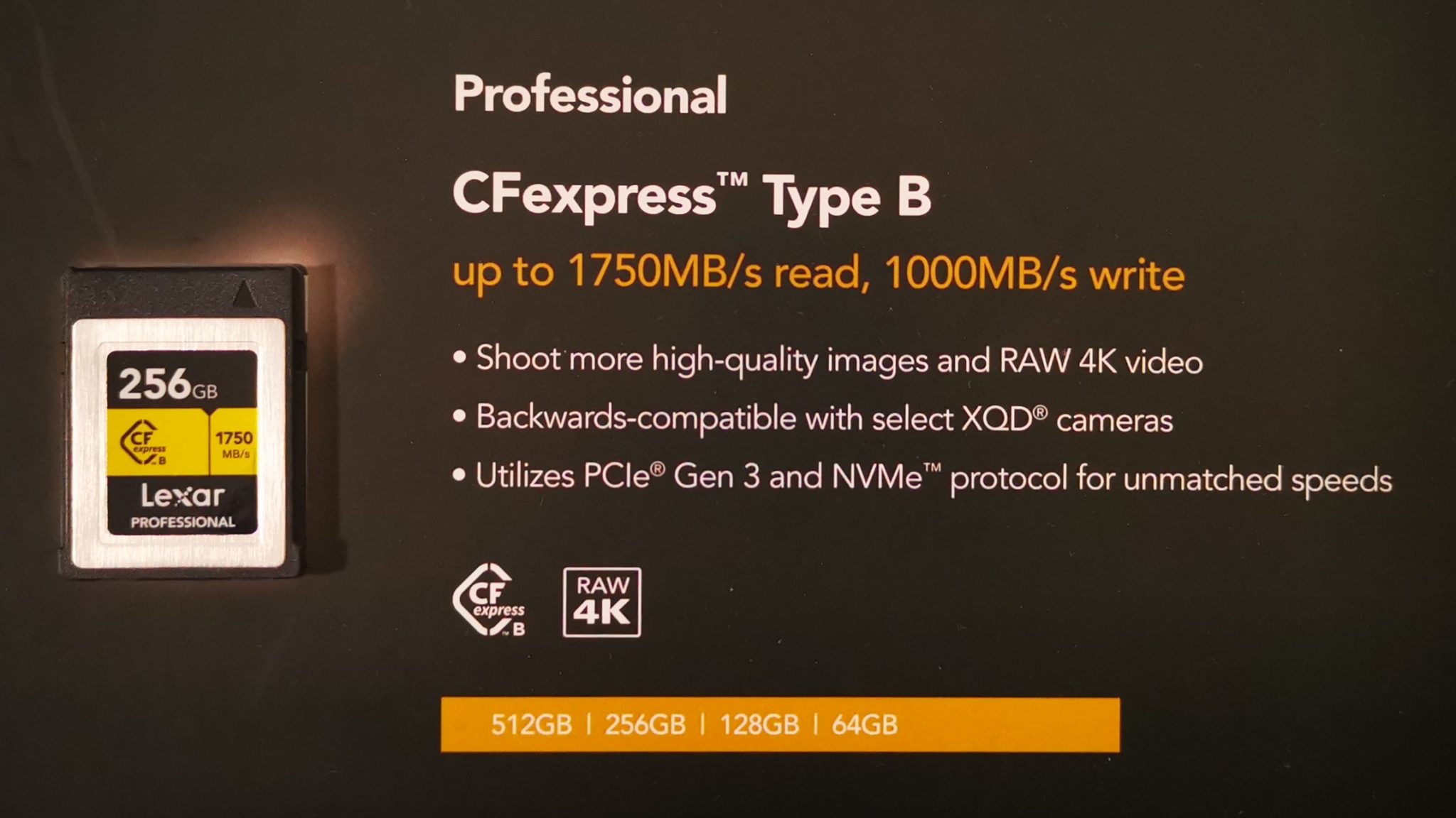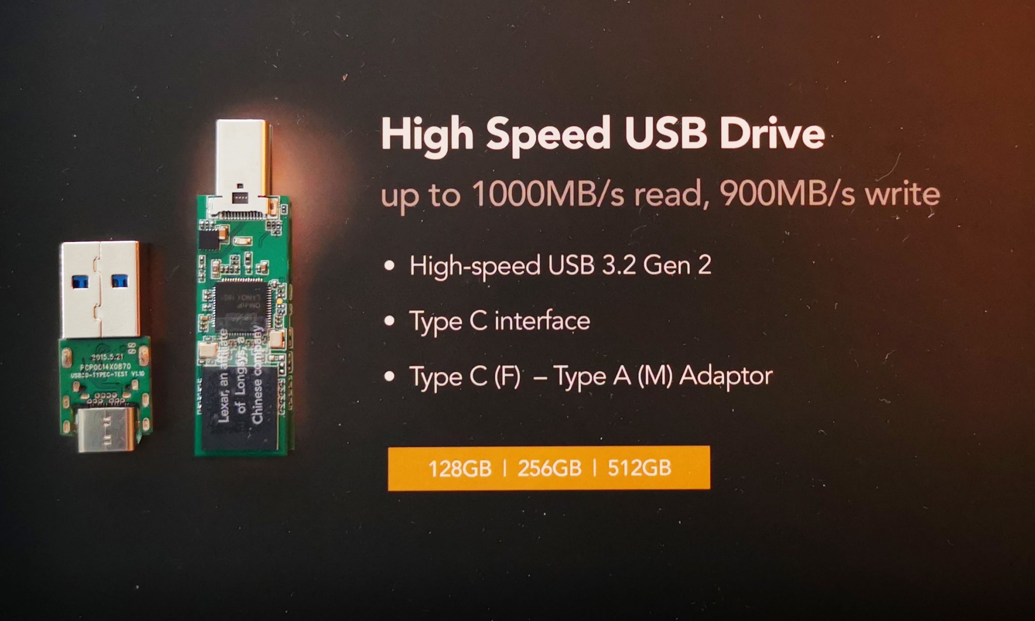 Also on display, this USB drive will reach speeds of 1GB/s and be available in 128, 256 and 512GB capacities. It uses USB 3.2 Gen 2 and will have both Type C and Type A (M) adapters.