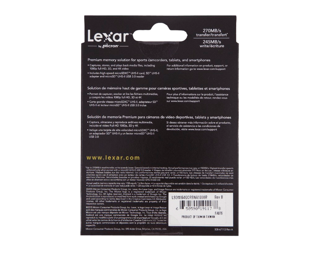 When it comes to speed, Lexar lists the micro SD cards to reach up to 270 MB/s read and 245 MB/s write.