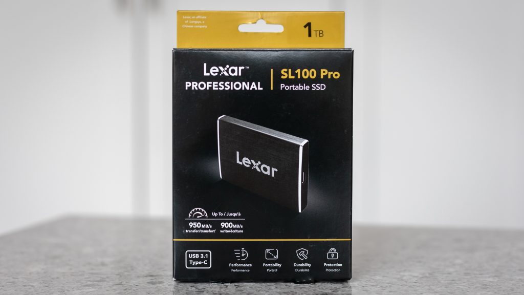 On our review bench today is the Lexar Professional SL100 Pr0 1TB Portable SSD. It is a bus-powered Type-C storage device and is capable of transfer speeds up to 950MB/s read and 900MB/s write. It is available in 250GB, 500GB amd 1TB capacities and comes with a 3-year limited warranty.