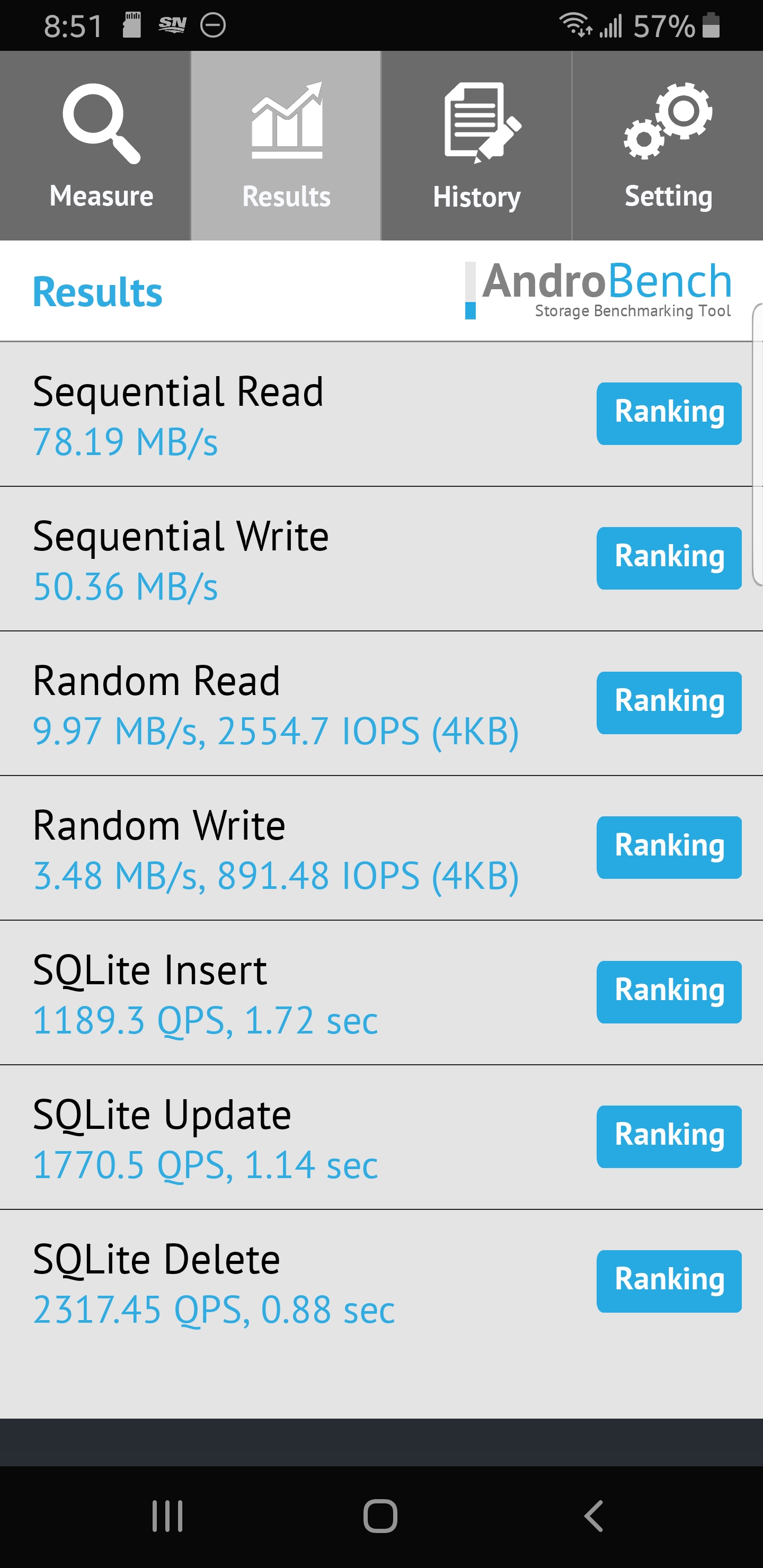 Just a bit below listed spec and this is only the second 1TB microSD that we have tested in our smartphone. While the Lexar was a bit high in its sequential reads at 78MB/s, the c200 prevailed in sequential writes and random read and write performance.
