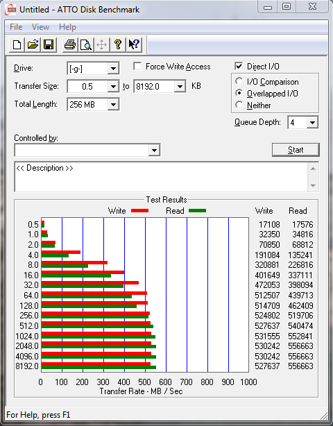 Performance result highs of 556MB/s read and 531MB/s write are some of the highest we have seen yet and meet manufacturer specifications.