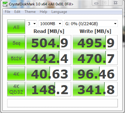 Crystal Disk Benchmark is used to measure read and write performance through sampling of raw (0/1 Fill/compressible) or random data which is, for the most part, incompressible. Many new SandForce Driven SSD owners who cant wait to test the performance of their SSD often grab this program and run a quick test, not realizing that they are testing with incompressible data rather than compressible data used in testing by manufacturers. We have provided compressible (oFill) results on the left with incompressible (random data) results on the right.