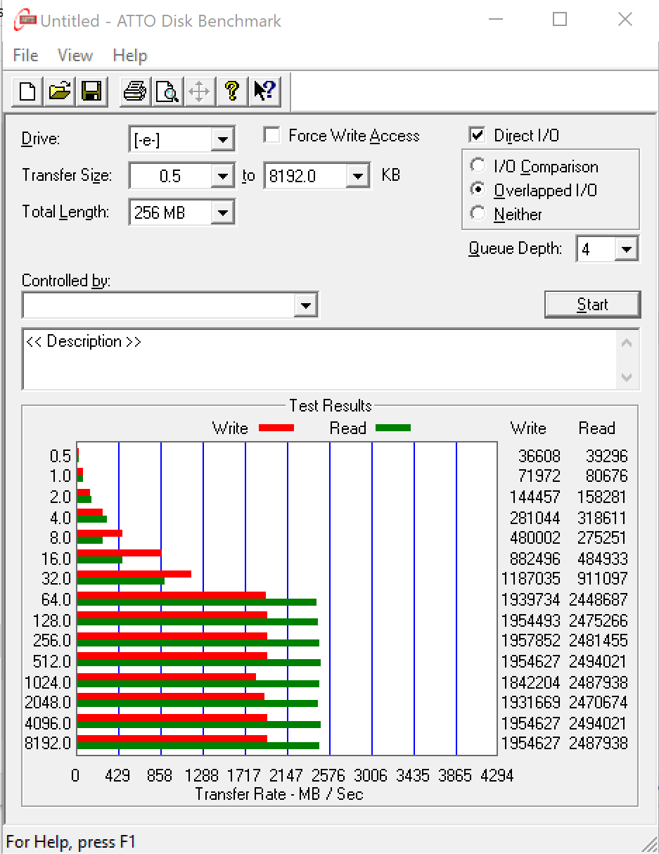 ATTO Disk Benchmark is perhaps one of the oldest benchmarks going and is definitely the main staple for manufacturer performance specifications. ATTO uses RAW or compressible data and, for our benchmarks, we use a set length of 256mb and test both the read and write performance of various transfer sizes ranging from 0.5 to 8192kb. Manufacturers prefer this method of testing as it deals with raw (compressible) data rather than random (includes incompressible data) which, although more realistic, results in lower performance results.