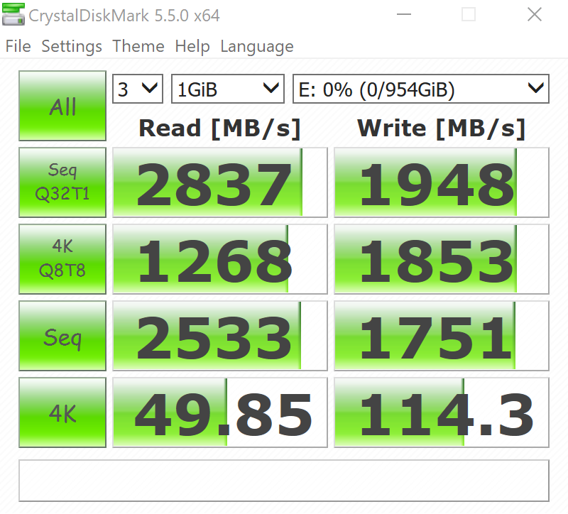 Sequential results for Crystal Disk Mark are right where we want them to be, hitting 2.8GB/s read throughput. Low 4K could be a bit better, however, we need to understand that external storage is for just that…storing very large media files. This performance also makes it very easy to manipulate 4K media and larger.