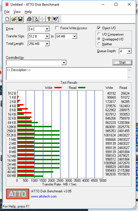 ATTO Disk Benchmark is perhaps one of the oldest benchmarks going and is definitely the main staple for manufacturer performance specifications. ATTO uses RAW or compressible data and, for our benchmarks, we use a set length of 256mb and test both the read and write performance of various transfer sizes ranging from 0.5 to 8192kb. Manufacturers prefer this method of testing as it deals with raw (compressible) data rather than random (includes incompressible data) which, although more realistic, results in lower performance results.