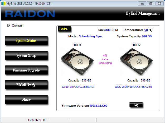 The temperature of the device and the RPM of the fan that cools the device are included up top. The “Mode” selection is going to indicate in what capacity the device is operating. Under “scheduling sync”, it indicates that the device is syncing depending upon a preset interval of time (ex. every three hours). In “Real Time Sync” mode the data that is being copied and modified on the SSD is being automatically backed up onto the HDD simultaneously, providing ultimate data redundancy.