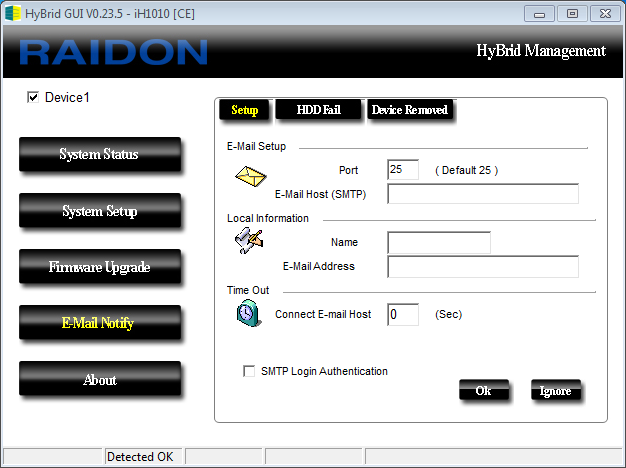 blankUnder the “E-Mail Notify” pane one can setup up ythedevice to actually email when certain things happen, such as if a HDD fails or someone removes a device from the enclosure. This could be very helpful in a enterprise situation where you have multiple users accessing/using the same drives, or many devices that would be hard to manage.