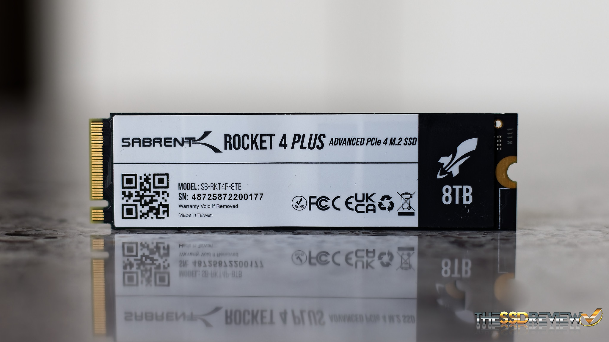 The Sabrent Rocket 4 Plus 8TB SSD is a PCIe 4.0 4-lane M.2 2280 form factor (22mm wide 80mm long) SSD that is NVMe 1.4 compliant. It’s performance drops slightly from the 4TB version (7.1GB/s read and 6.6GB/s write) where it is now 7GB/s read and 6GB/s write. There actually seems to be a bit of confusion as both speeds can be found relating to this SSD, however, our report relies on their own website tech specs
