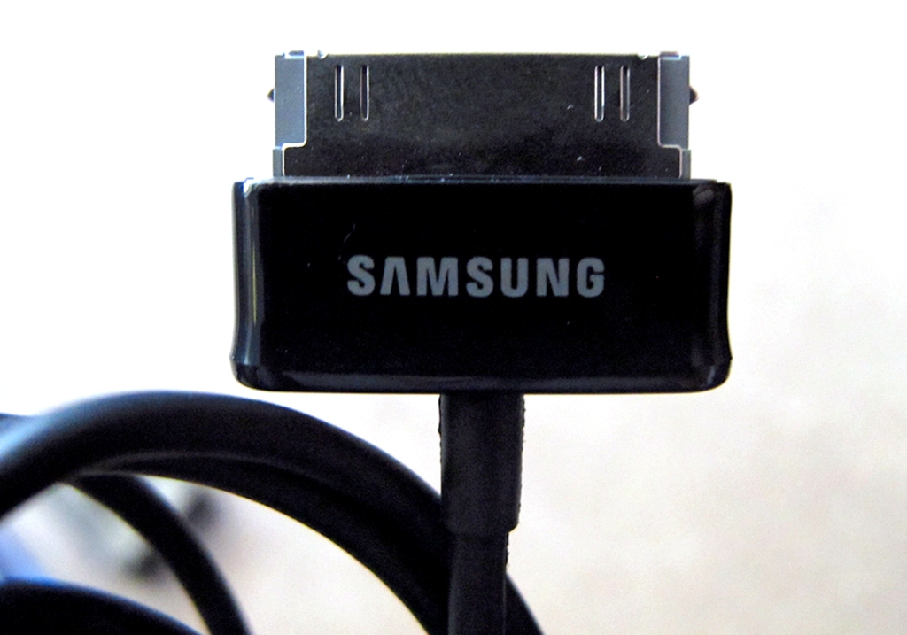It seems identical to your typical Apple 30-pin connector but it is not (trust me, I tried using both connectors in opposite devices). Samsung’s connector is a tad smaller, and a bit thicker than Apple’s. I have no idea why Samsung decided to use this instead of, say, a micro-USB port. Apple’s design encompasses many devices, whereas Samsung’s does not.