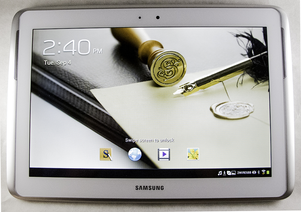Finishing off the exterior of the Samsung Galaxy Note 10.1, two speakers are built into either side of the tablet. I absolutely love that Samsung decided to put the speakers in the front instead of the back or sides: