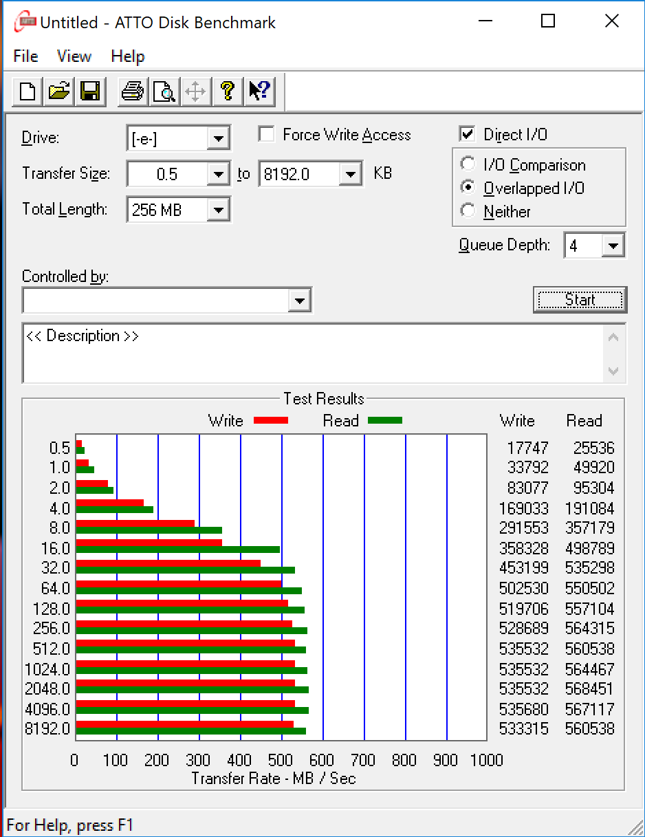 ATTO Disk Benchmark is perhaps one of the oldest benchmarks going and is definitely the main staple for manufacturer performance specifications. ATTO uses RAW or compressible data and, for our benchmarks, we use a set length of 256mb and test both the read and write performance of various transfer sizes ranging from 0.5 to 8192kb. Manufacturers prefer this method of testing as it deals with raw (compressible) data rather than random (includes incompressible data) which, although more realistic, results in lower performance results.