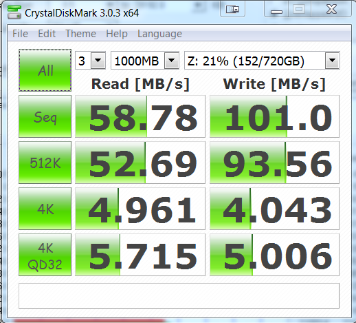 Ww were a bit surprised at the low write performance in Crystal DiskMark and cannot provide reasoning for such. We wanted to bring to your attention the low 4K results which, even though we are using SSDs, resemble that of a hard drive.