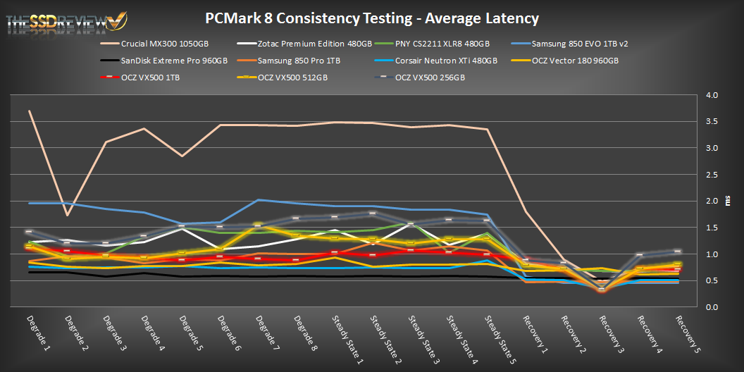 In reading the results, the Degrade and Steady State phases represent heavy workload testing while the recovery phase represents typical consumer light workload testing.