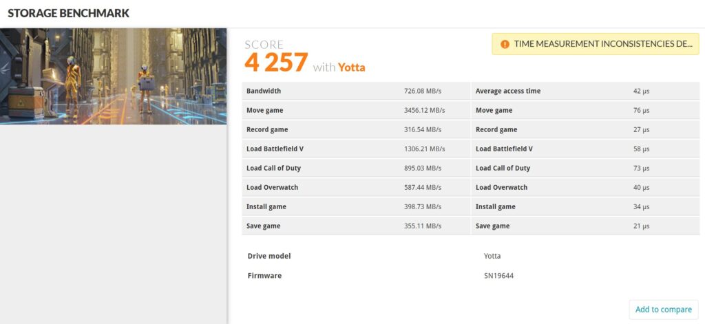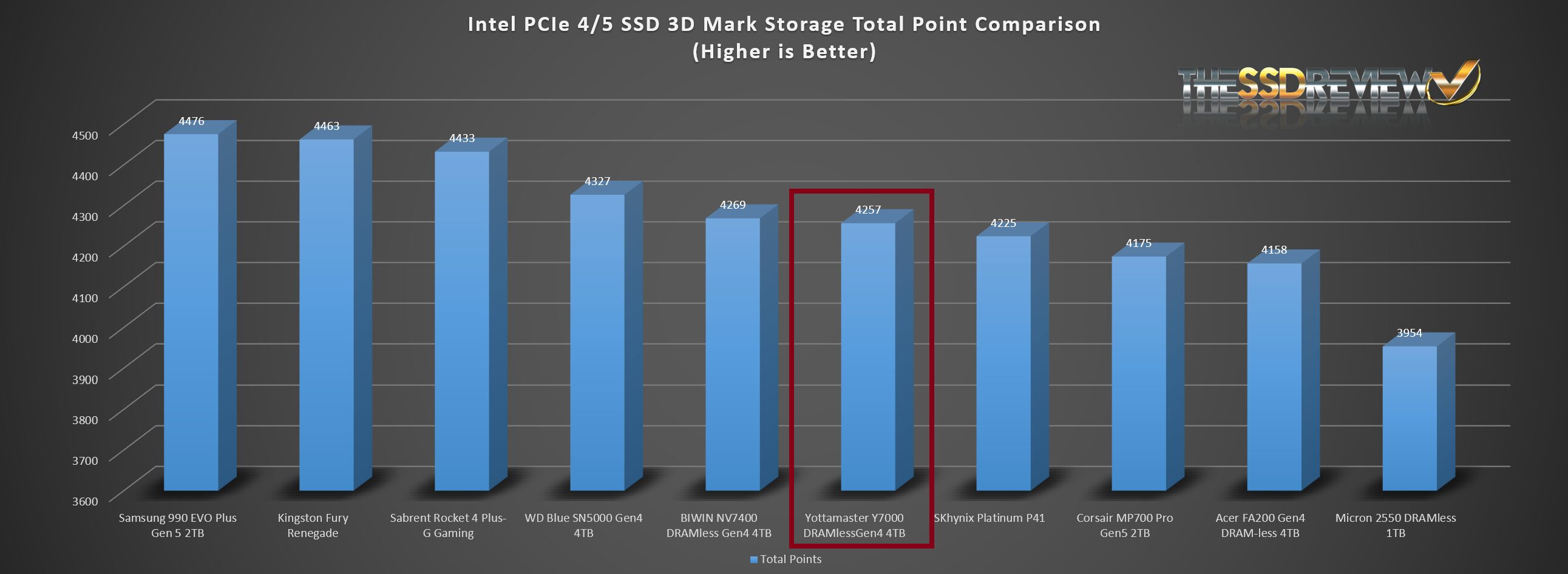 The Yottamaster Y7000 Pro placed in the bottom third of 3DMark Storage Benchmark which is what might be expected as this benchmark is the trues real world type test available.