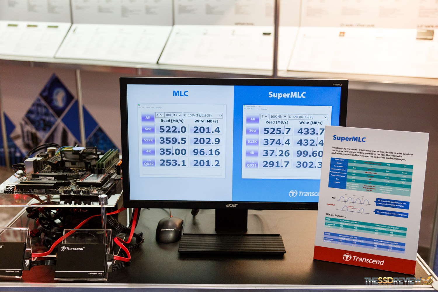 Many vendors at FMS this year are introducing evolutionary products and Transcend is no different. While at their booth we spotted them demonstrating the performance of their SuperMLC NAND. SuperMLC was originally developed to deliver industrial customers the high performance and reliability that SLC offers, but at a lower, more cost effective price point.
