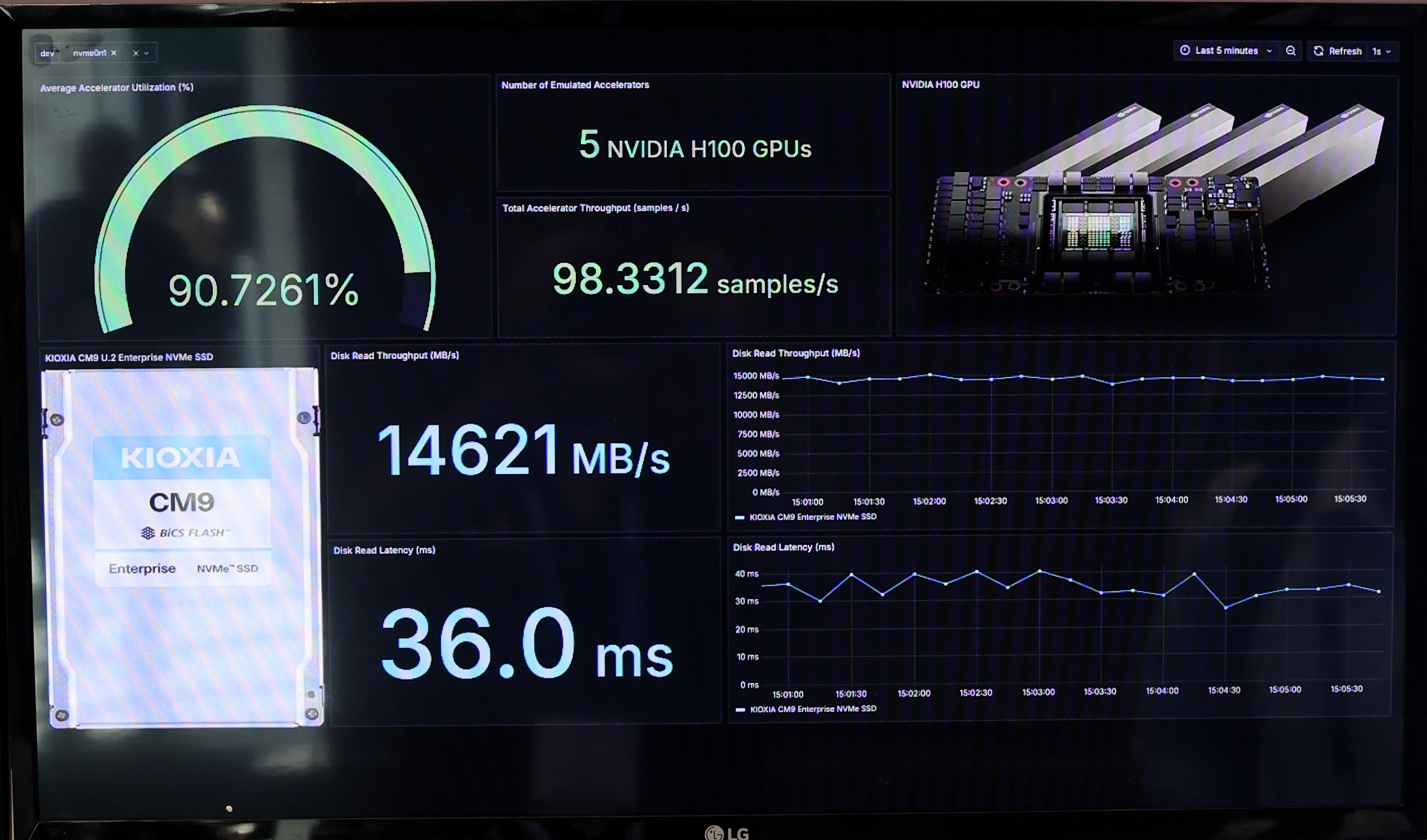 The CM9 affords up to a read intensive one drive write per day (DWPD) endurance or three DWPD for mixed use. This SSD is KIOXIA proprietary in that it comprises of KIOXIA controller, firmware and BiCS 8 3D NAND flash memory which utilizes their newest CBA technology. The difference between this SSD and the next CD9P is that the CM9 is a dual-port SSD. This benchmark was through a running test at the display: