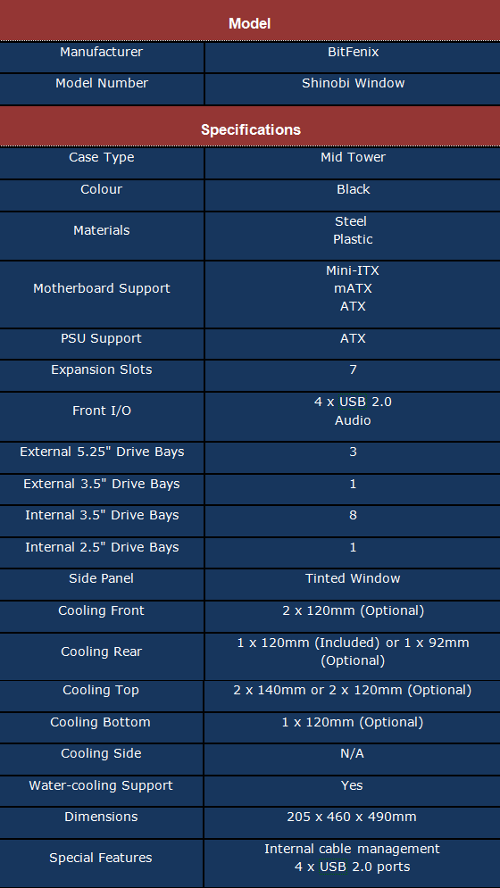 From the uniquely crafted side panel window and fan vents, to the brushed aluminum accents, Shinobi carries through the signature BitFenix design philosophy of clean lines, understated elegance, and modern styling. If looks could kill, a glance at Shinobi could be your last.