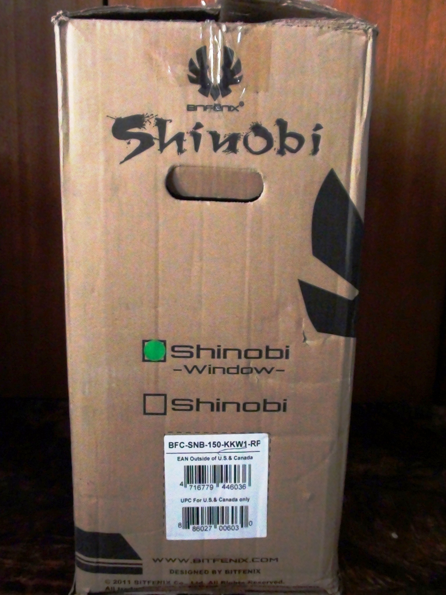 On one side there is a UPC label as well as the same green dot notifying us that this Shinobi is indeed the windowed version: