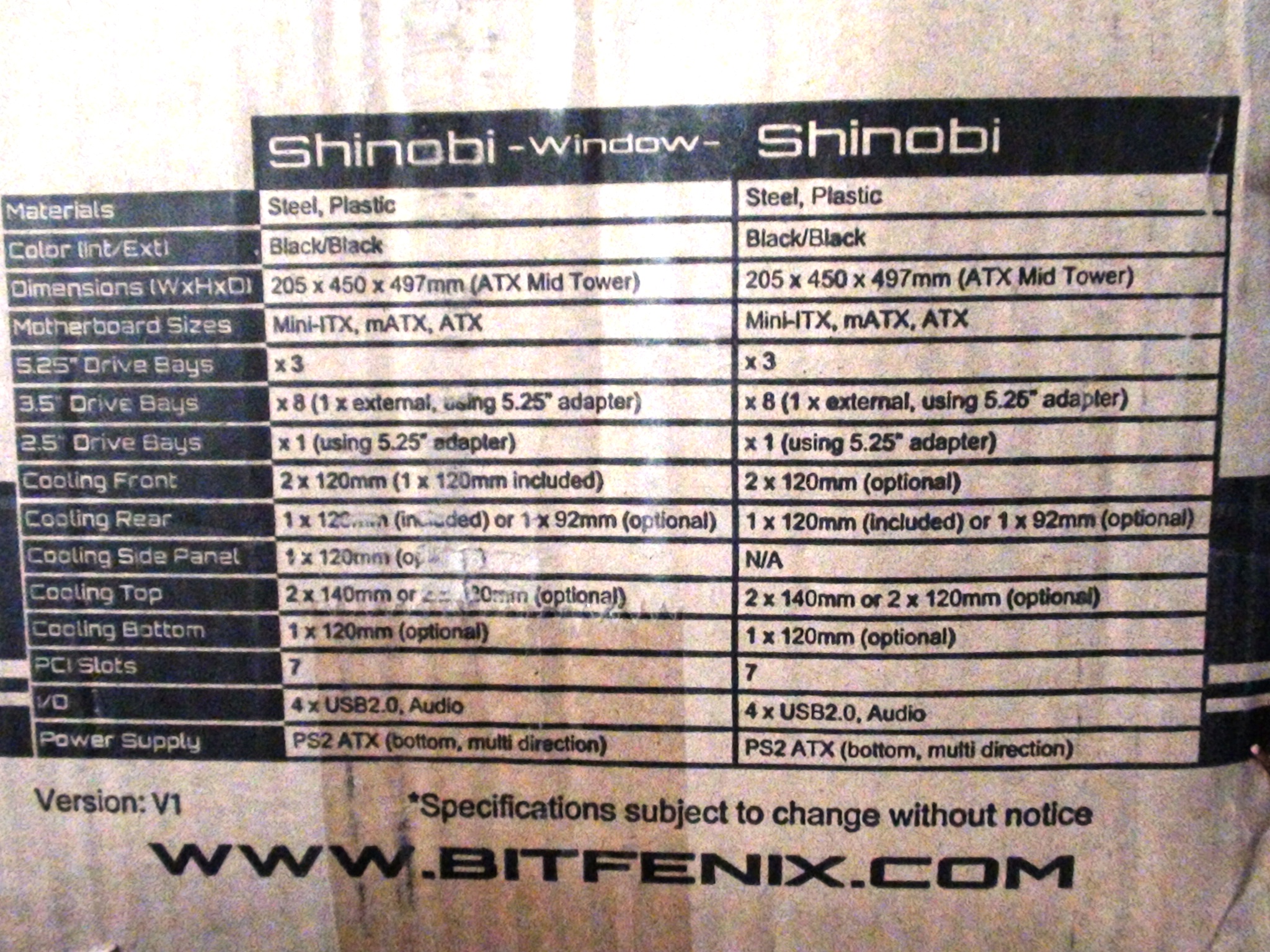 …and on the other side there is a graphic of the case itself, as well as a table of specifications:
