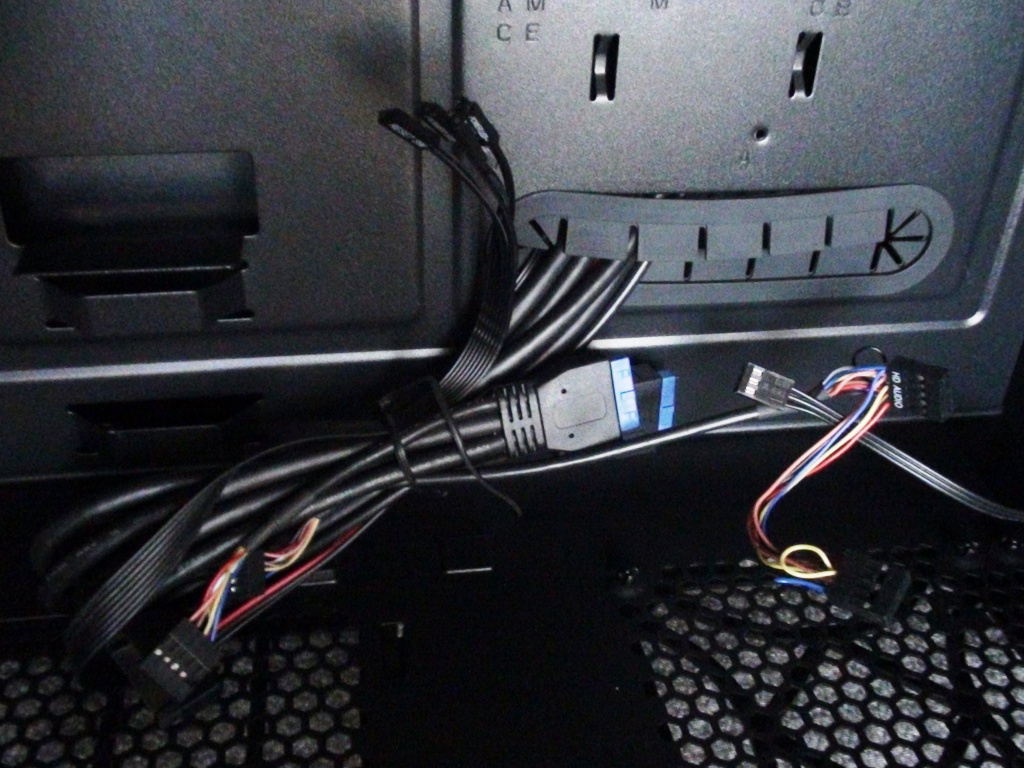 Finally, the front panel cables include the usual LED, audio, microphone, power, and reset switches, USB 3.0 connectors, and a SATA power header for the SuperCharge port. It is nice to see the wiring encased in black to match the overall theme of the XL: