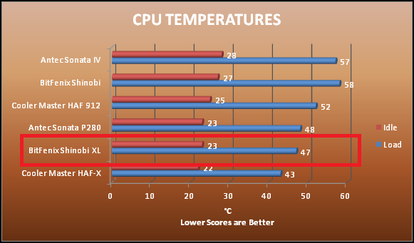 The AIDA64 system stability and benchmark utility was used to test the CPU, chipset, DIMM, and hard-drive temperatures, and 3DMark 11 for the GPU temperature. Two extra cases joined the fray, both XL-ATX ready: Antec Sonata P280 and Cooler Master HAF-X. The benchmarks from the original Shinobi and accompanying competition are incorporated as well: