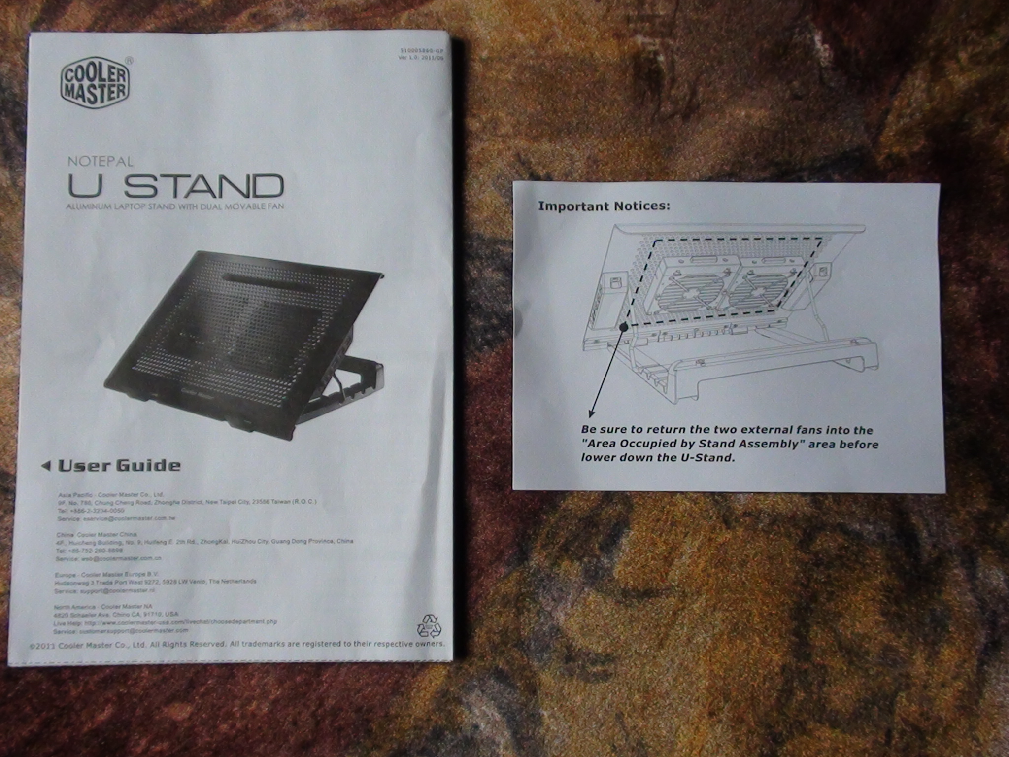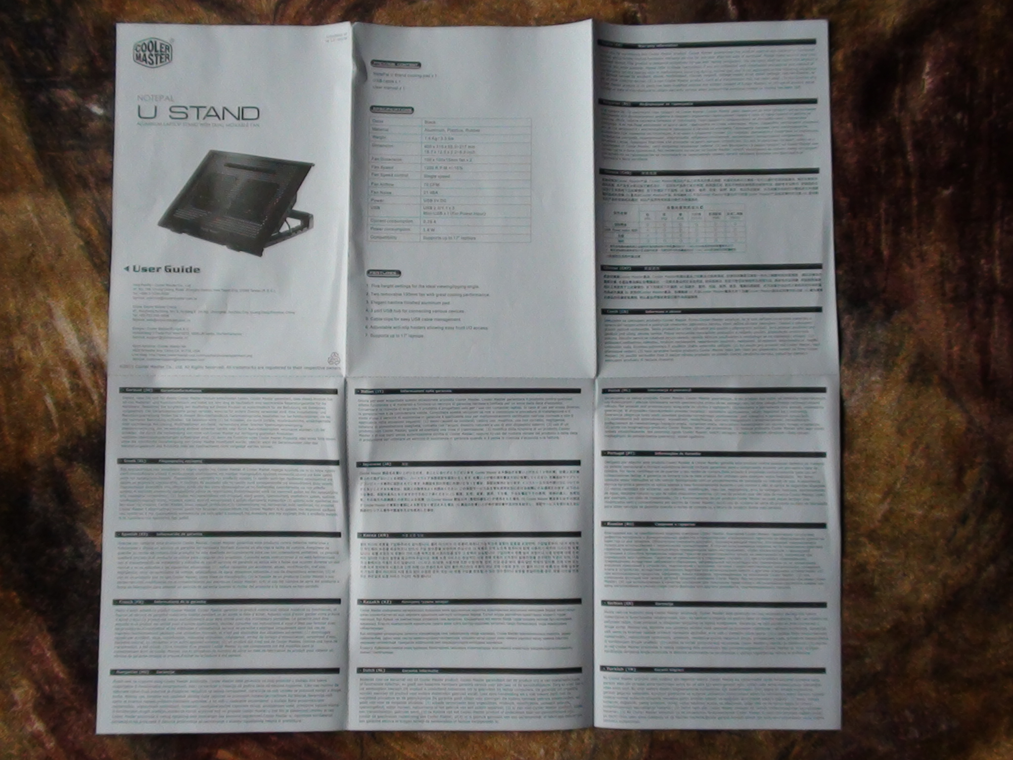 The manual has all of the usual information you would expect to find. I found the diagrams and descriptions to be extremely helpful when installing the U Stand as it is the first laptop cooler I have ever used: