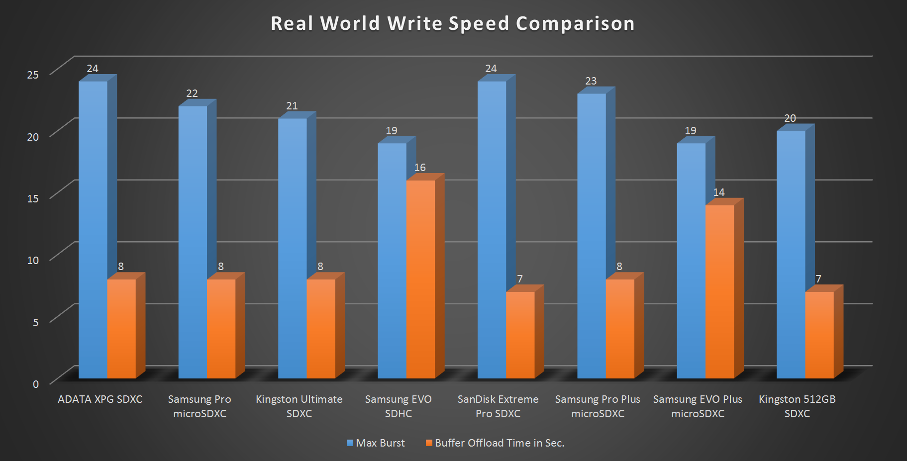 With the Kingston 512GB SDXC Card, I was able to take a total of 20 image burst before burst speed started to stutter and slow down. The time it took for the buffer to offload to the card after the slowdown was 7 seconds. Then I was able to shoot another 20 images again after that. Considering the capacity of the card, this is an excellent result when compared to other cards containing only a fraction of available storage space.