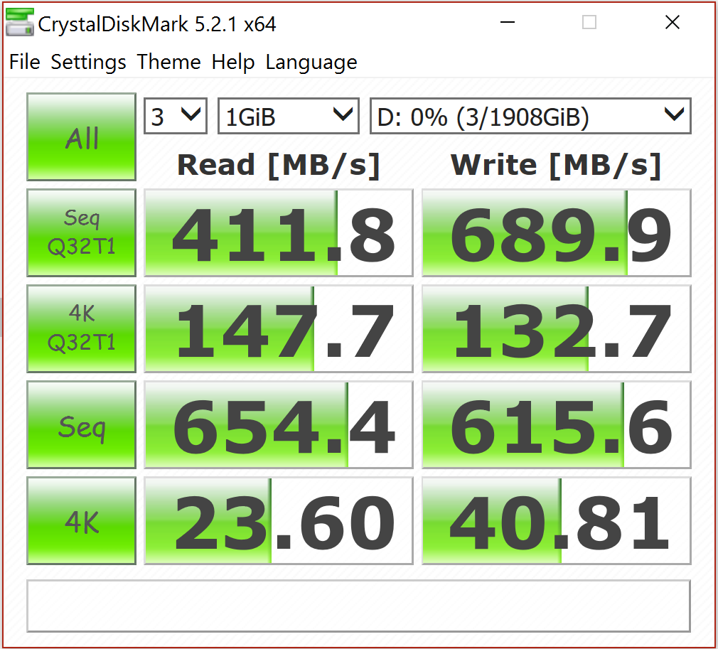 Now that is most impressive from an external SSD… and actually, this may be one of the fastest external SSDs available today, 765MB/s read and 808MB/s write data transfer speeds.