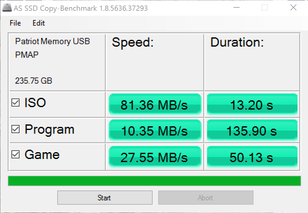 When testing the Patriot Supersonic Magnum2 USB 3.1 Flash Drive similar to how the manufacturer would have attained their specifications, we can reach listed specs with Crystal DiskMark. Some may wonder why we have omitted the remainder of the tests in this software program and the reason is that it we typically do such as it takes much longer to complete the tests. The other results are not that good quite frankly, and 4k transfer speeds are very low. This flash drive, as with most, is intended for the transfer of larger files to include media such as music, movies and pictures and these are the speeds that can be realized when utilizing the drive for its intended use.