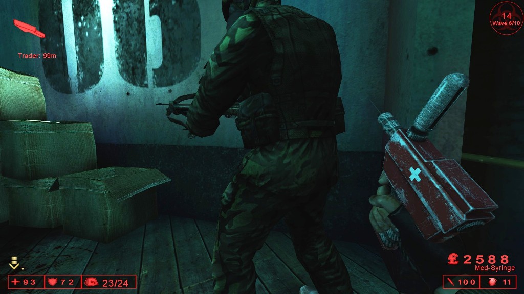 When it comes to hit points, there is no regenerating health. Killing Floor is based on a direct, old school method of healing. Every perk has a medi-syringe they can use on others and themselves, with a cooldown timer of about two seconds between heals, and five after using two in succession.