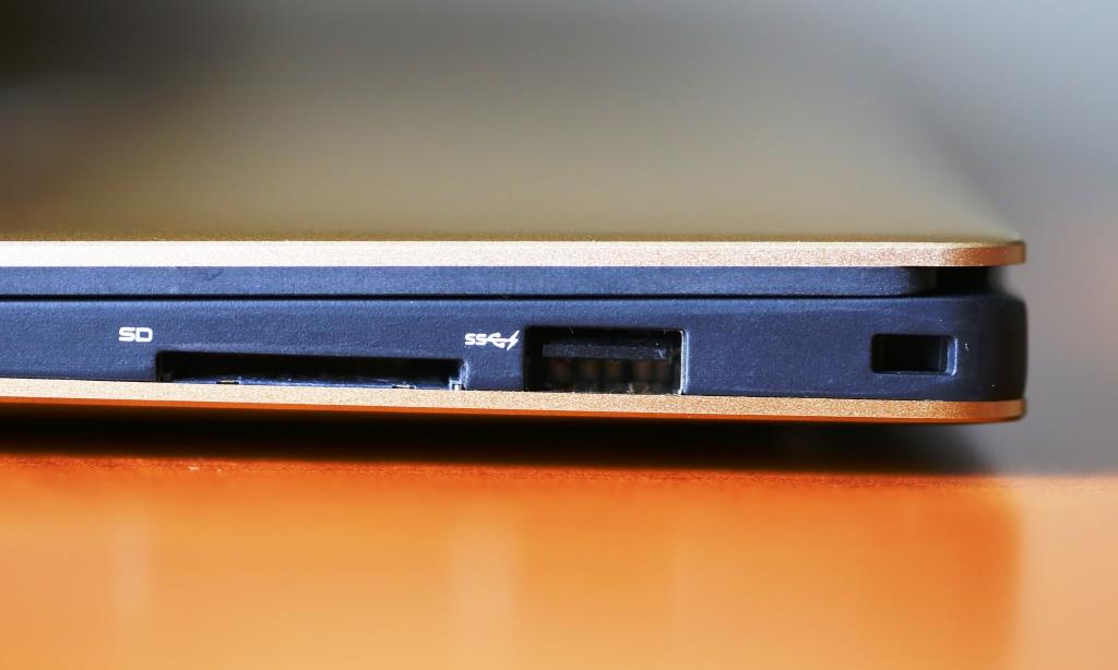 On the right side we have ports for the Kensington Lock, another USB 3 SuperSpeed and a SD card.
