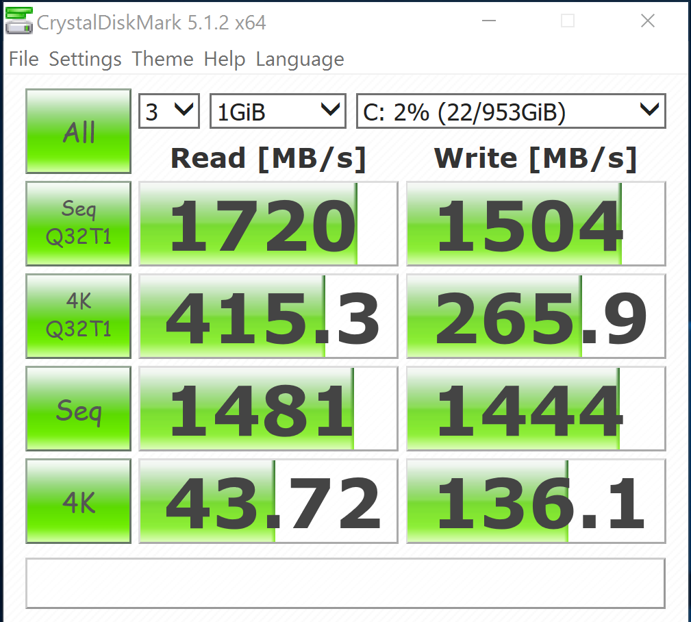 The result on the left displays the stock SSD performance, whereas that on the right is our newly installed Toshiba XG3 in the optimized system. As much as we enjoy the performance gain, that low 4K write result of the stock SSD at 169Mb/s transfer speed is incredible. We could not match that with the other SSDs.
