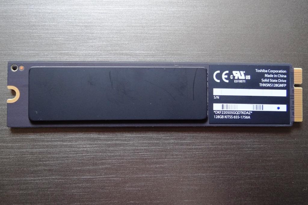 The Toshiba THNSNS128GMFP is a ‘gumstick’ style SSD and it’s SATA connector is proprietary to Apple and, more specifically, proprietary to only new Apple systems released mid-2012. Apple has made sure that, not only can we not switch off the SSD with a third party SSD but also, we can’t even switch off the SSD with 2010 Mac release product SSDs. Clicking on any photo will bring up a higher resolution photograph.